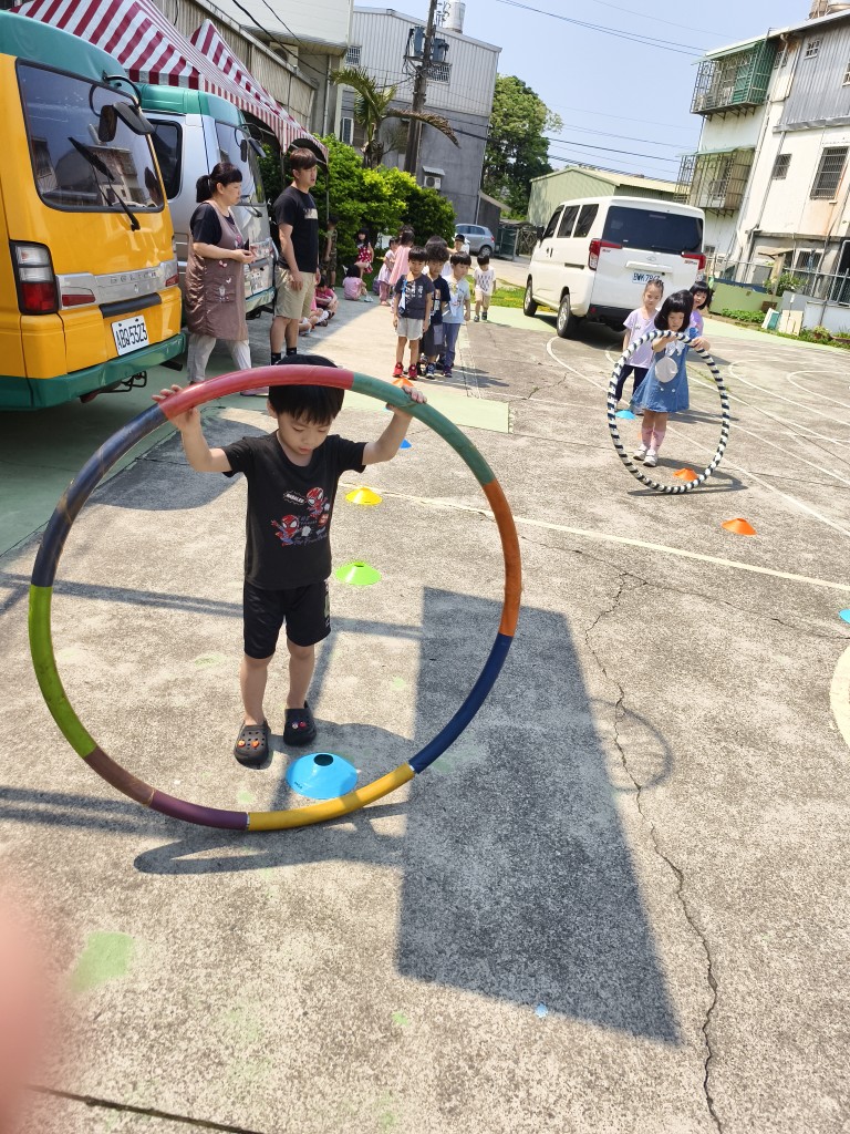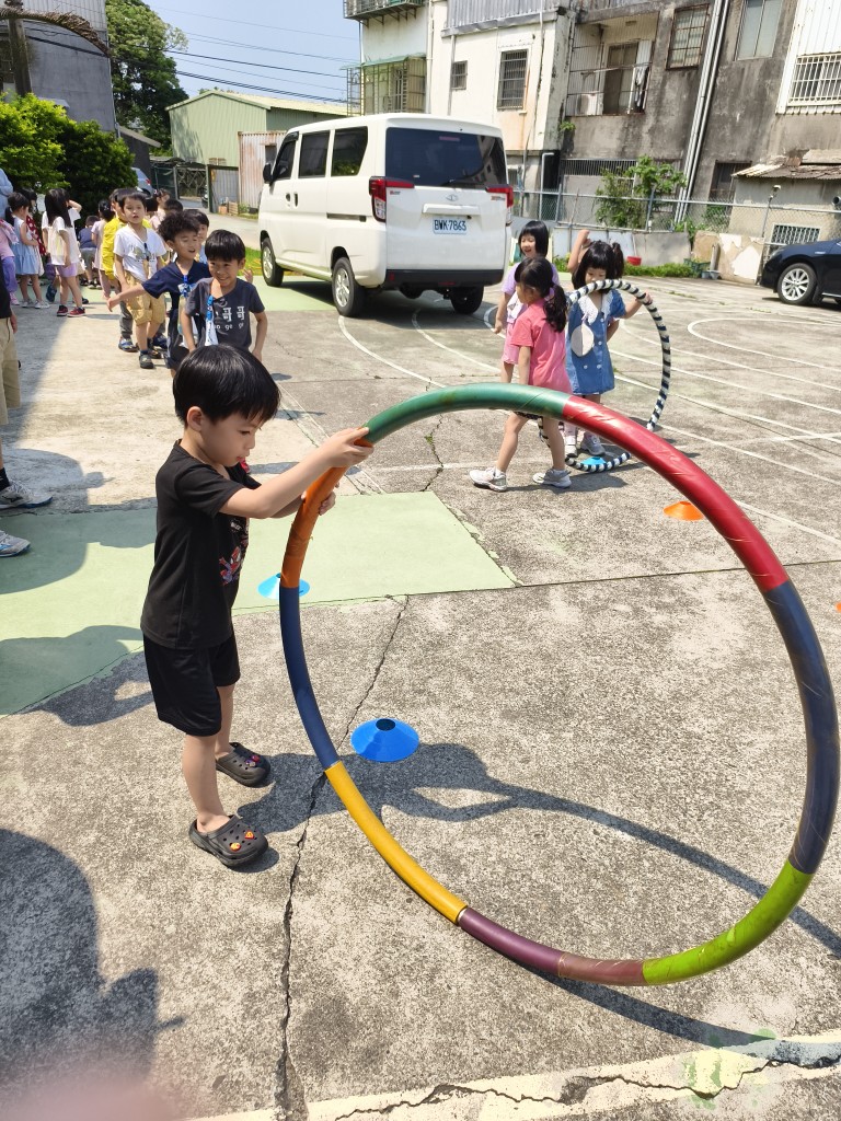 相簿名稱: 企鵝班:大肌肉活動-體能~彎曲跑與滾動呼拉圈
